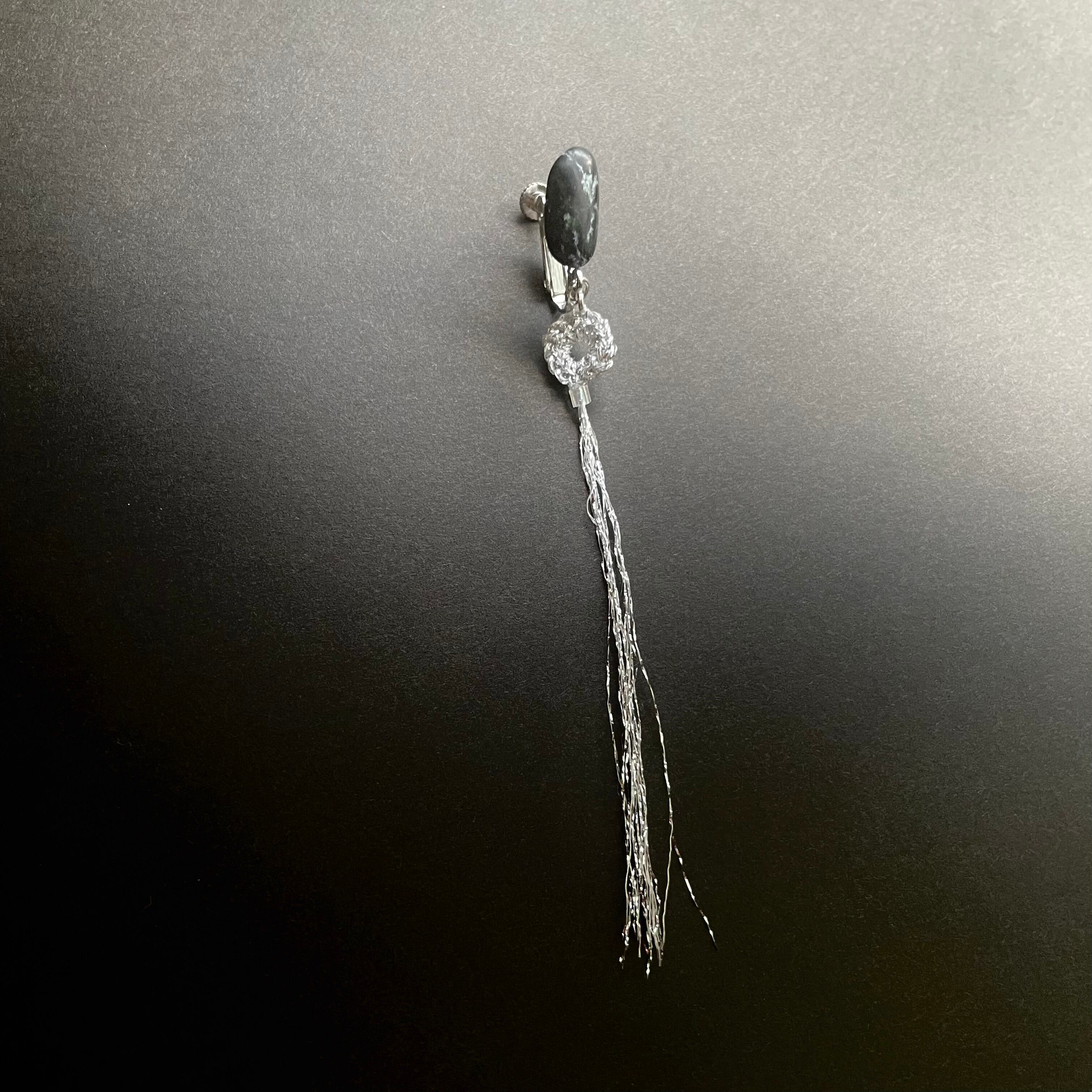 艶のある黒系の石にシルバーの編み物を組み合わせました。黒地に映える白色の模様の石がスタイリッシュで格好良いです。