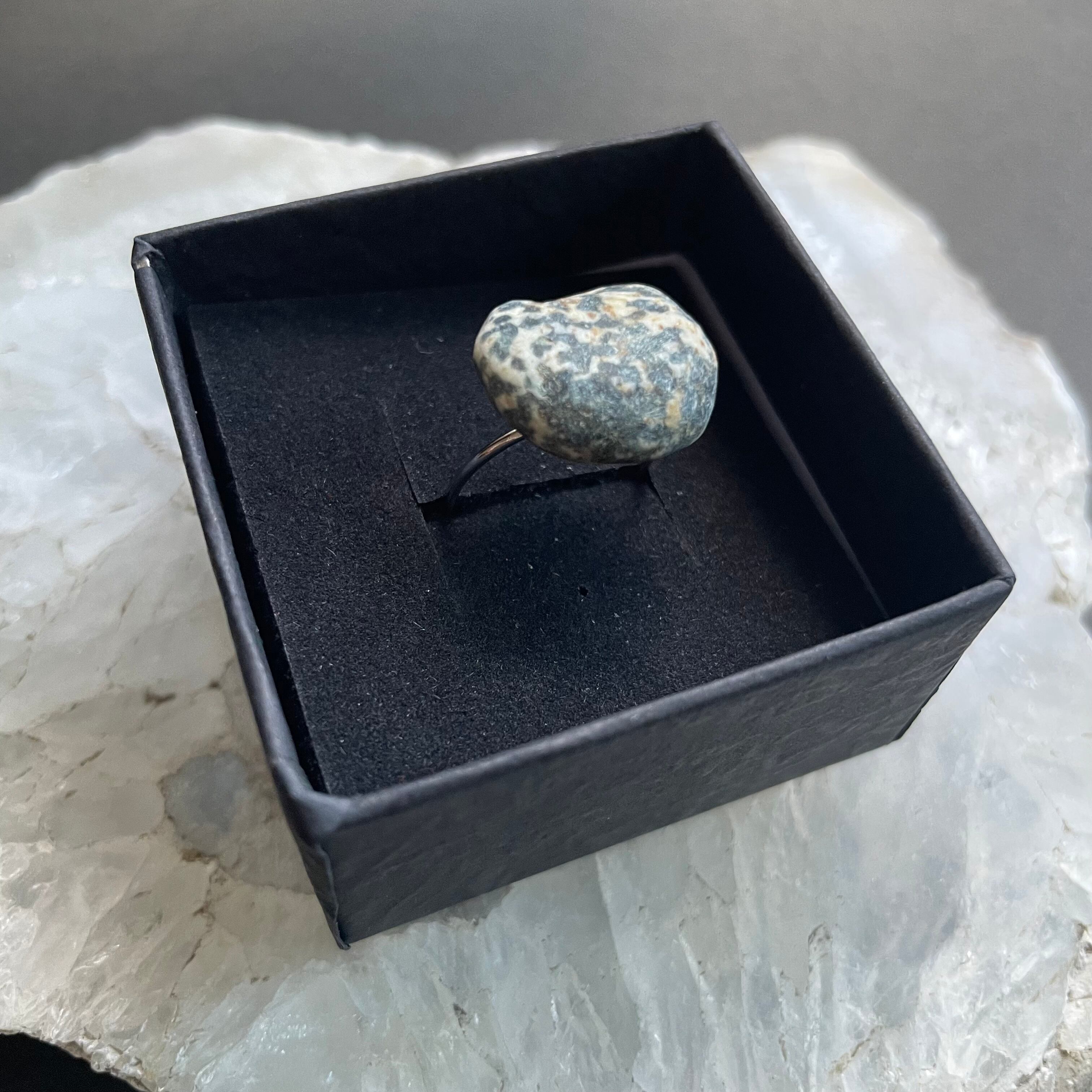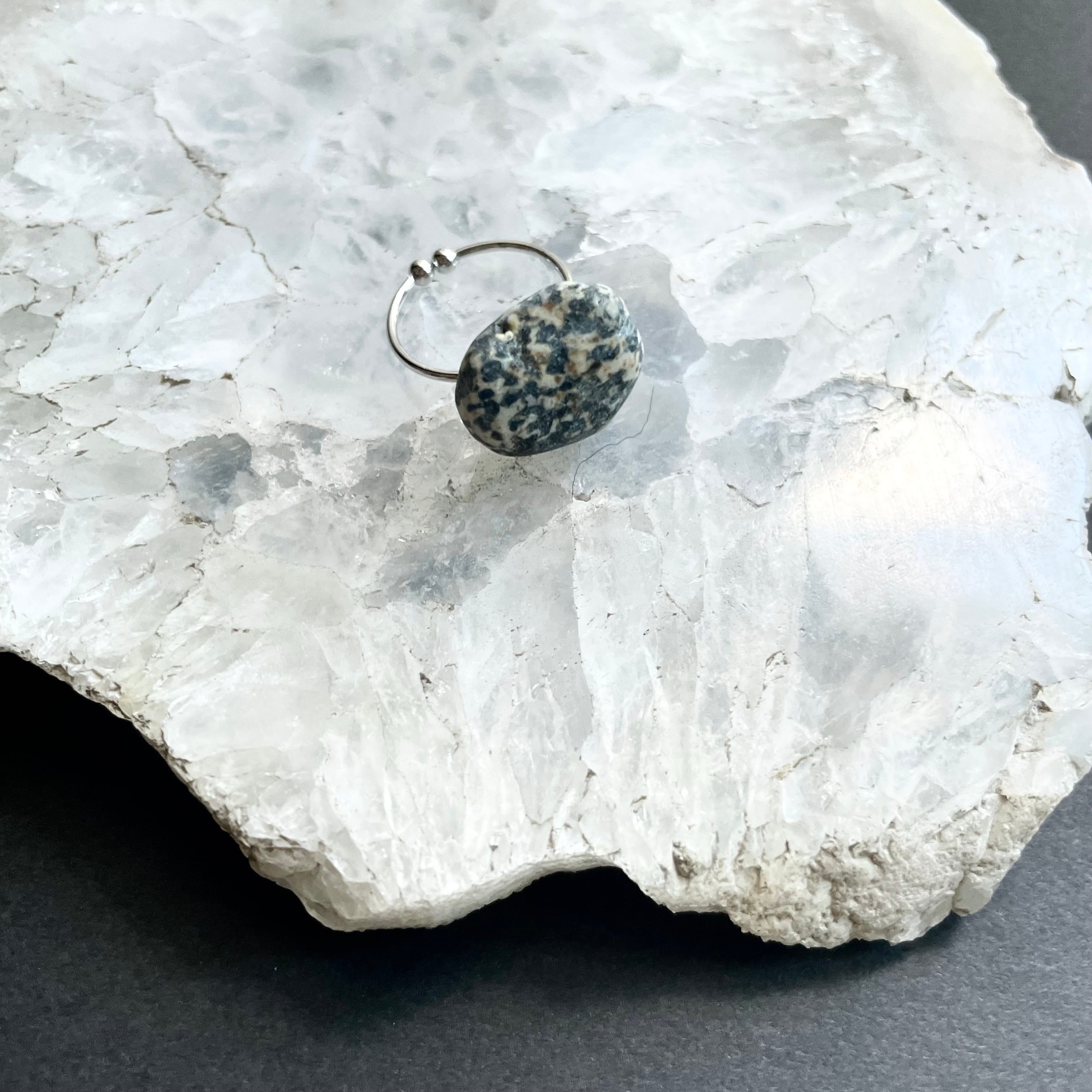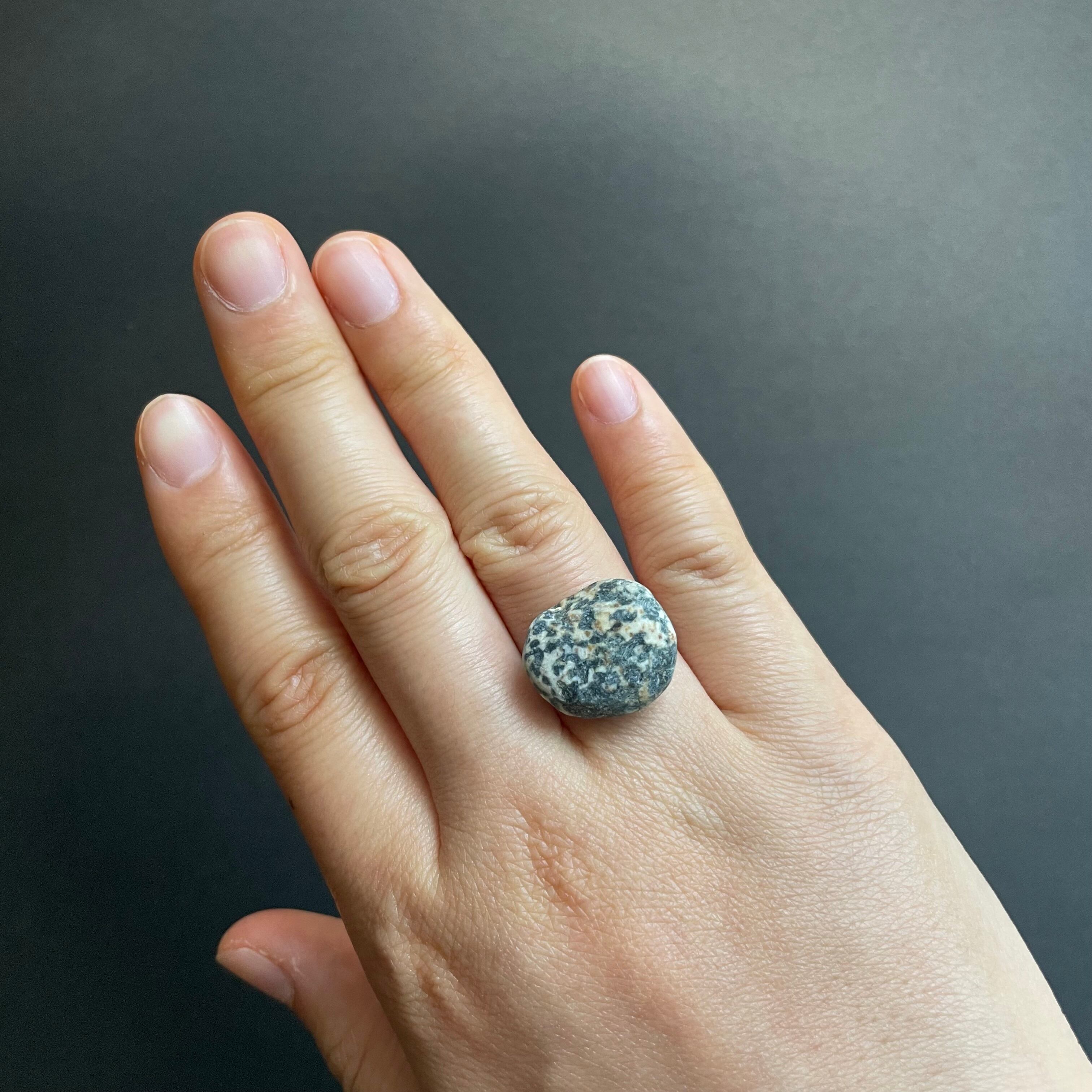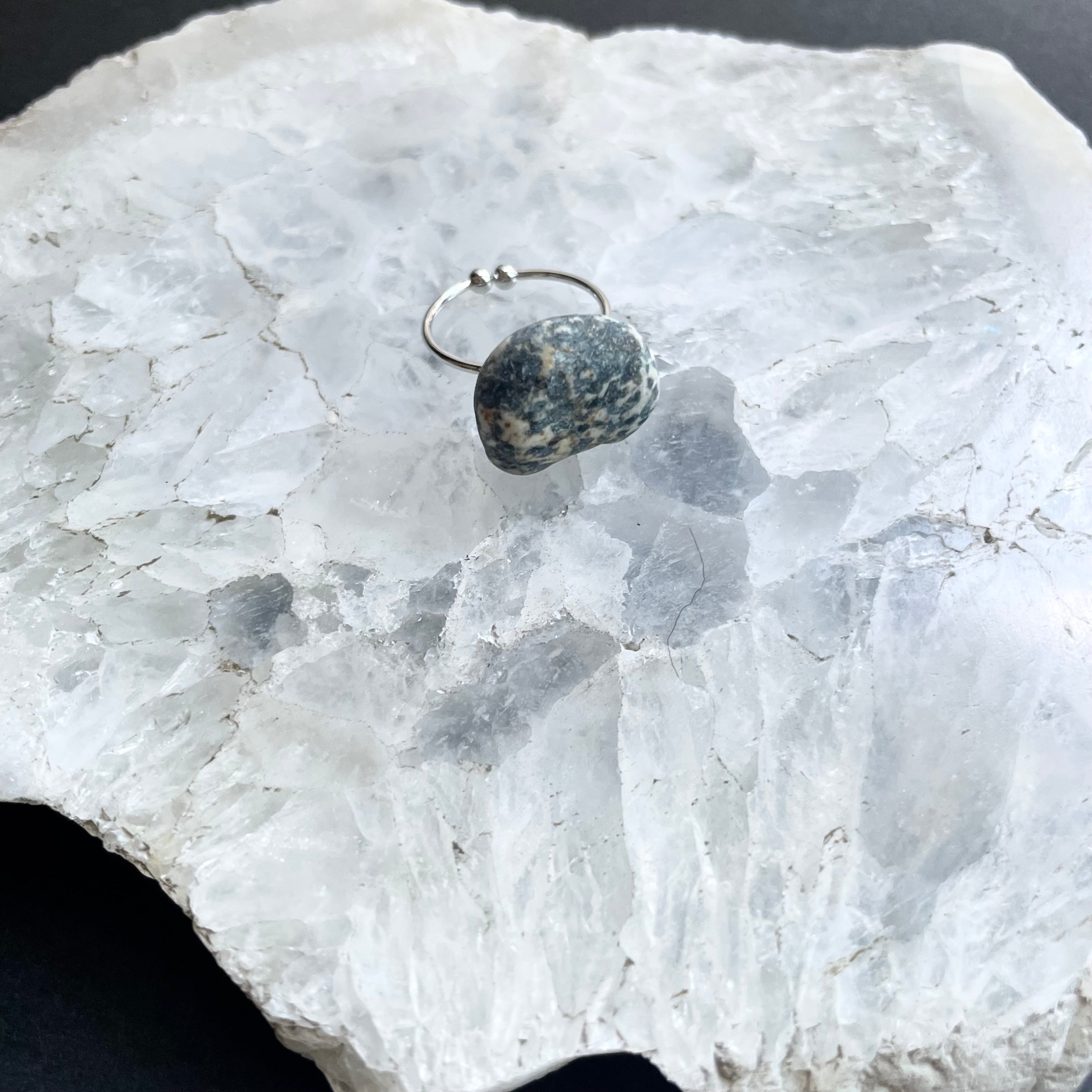 川に流され、石と石がぶつかり合って丸くなった角、自然にできた模様。そんな石の意志を感じる天然石をリングにしてみました。
