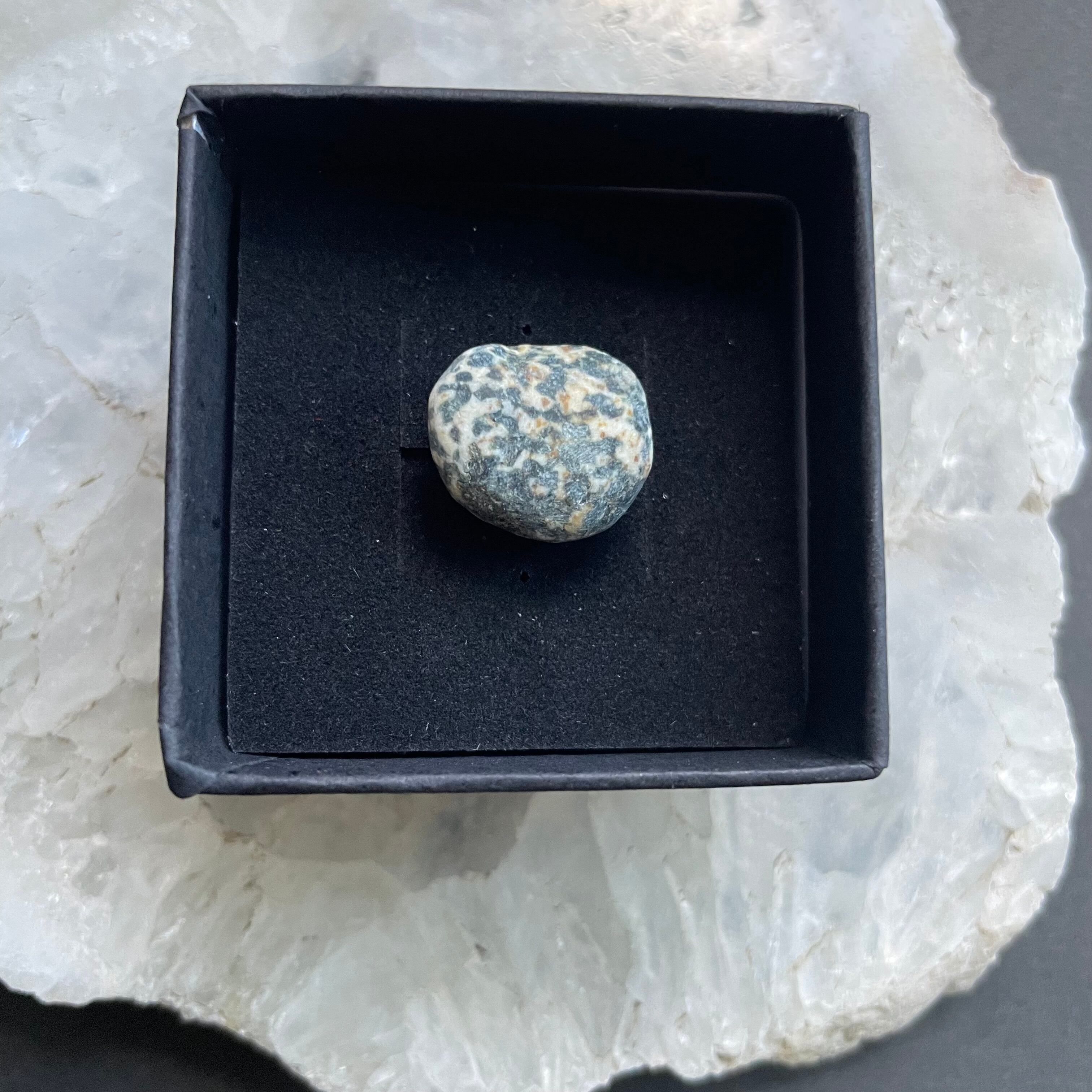 つぶつぶのドット模様がおもしろく、その表情とは裏腹に、手触り滑らかな石です。