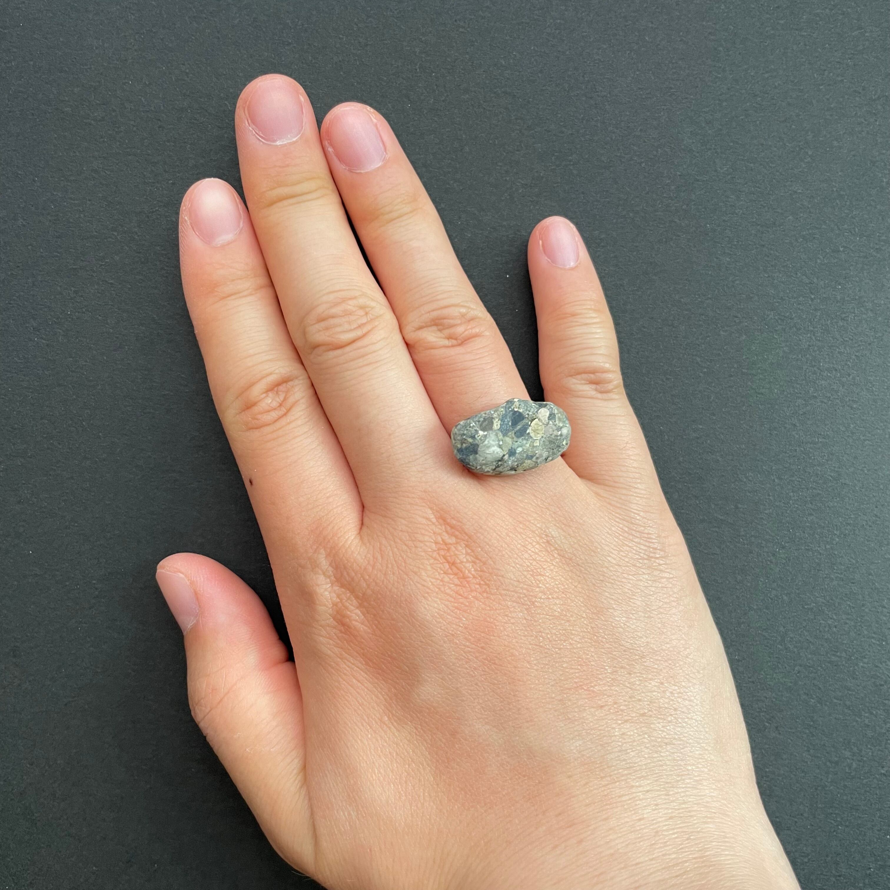 川に流され、石と石がぶつかり合って丸くなった角、自然にできた模様。そんな石の意志を感じる天然石をリングにしてみました。