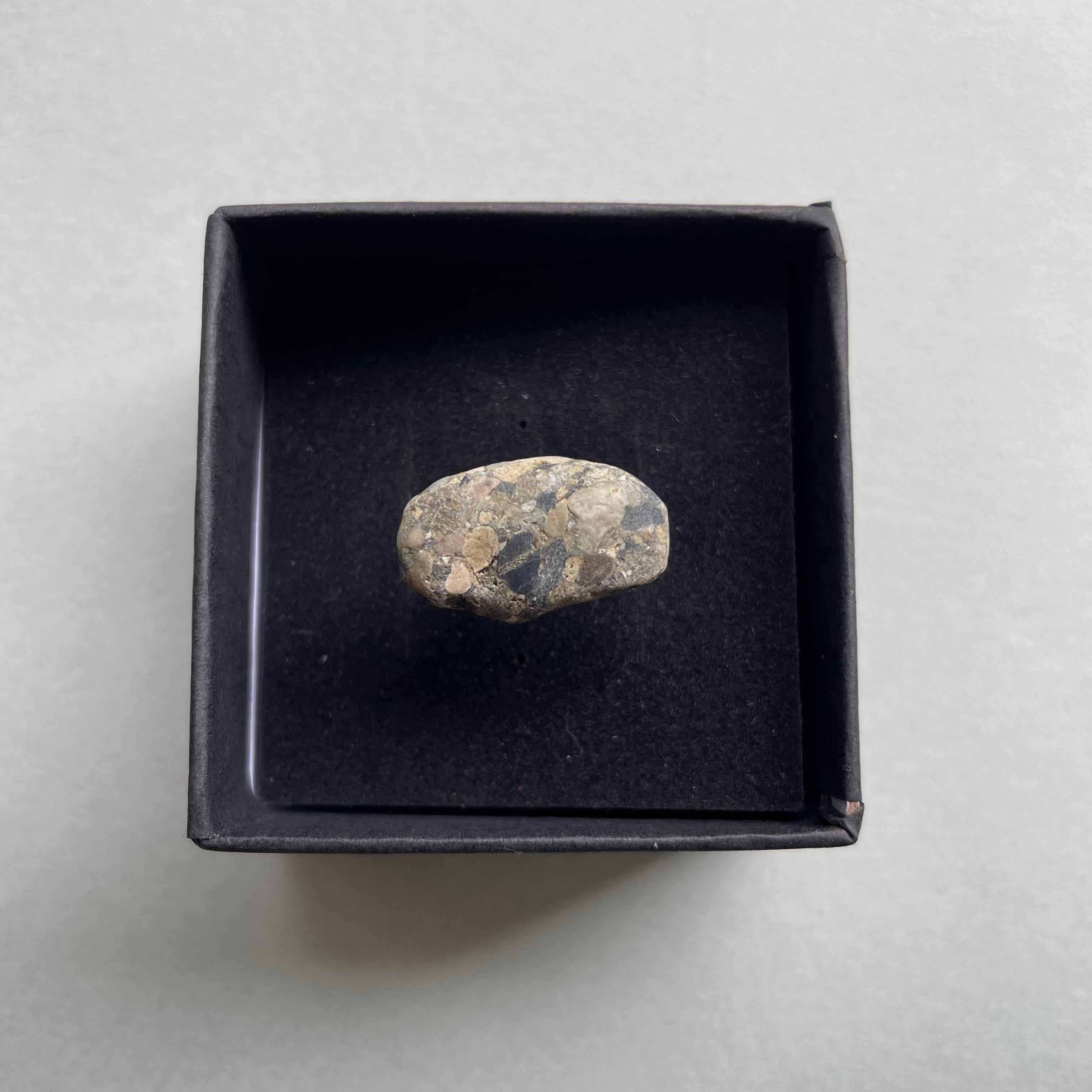 小さな色とりどりの石が集まってできた、手触り滑らかな石です。